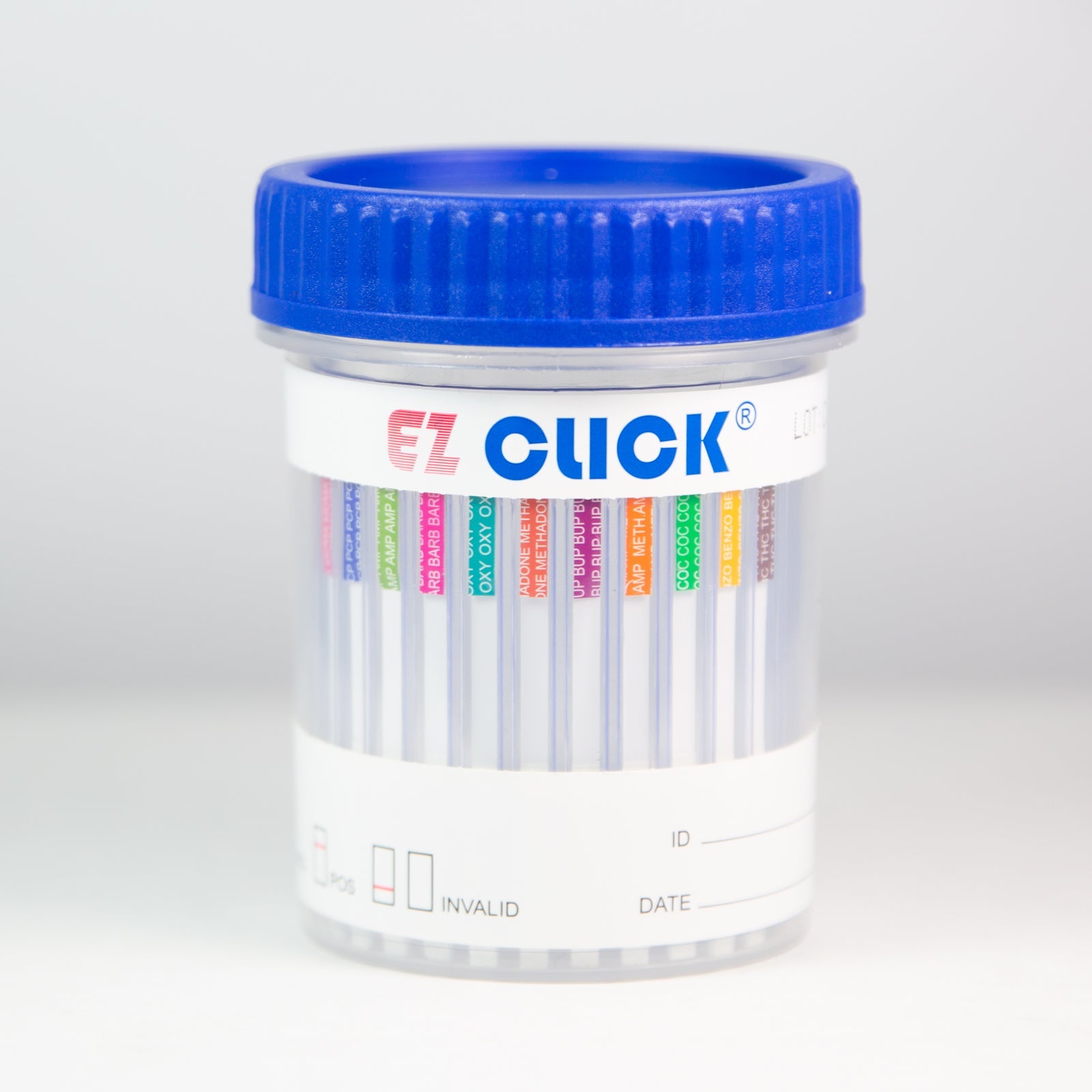 12 Panel EZ Click™ Urine Cup Drug Tests + Ads (25/Box) (AMP, BAR, BUP, BZO, COC, MAMP, MDMA, MOR, MTD, OXY, PCP, THC, PH-SG-OX) CLIA